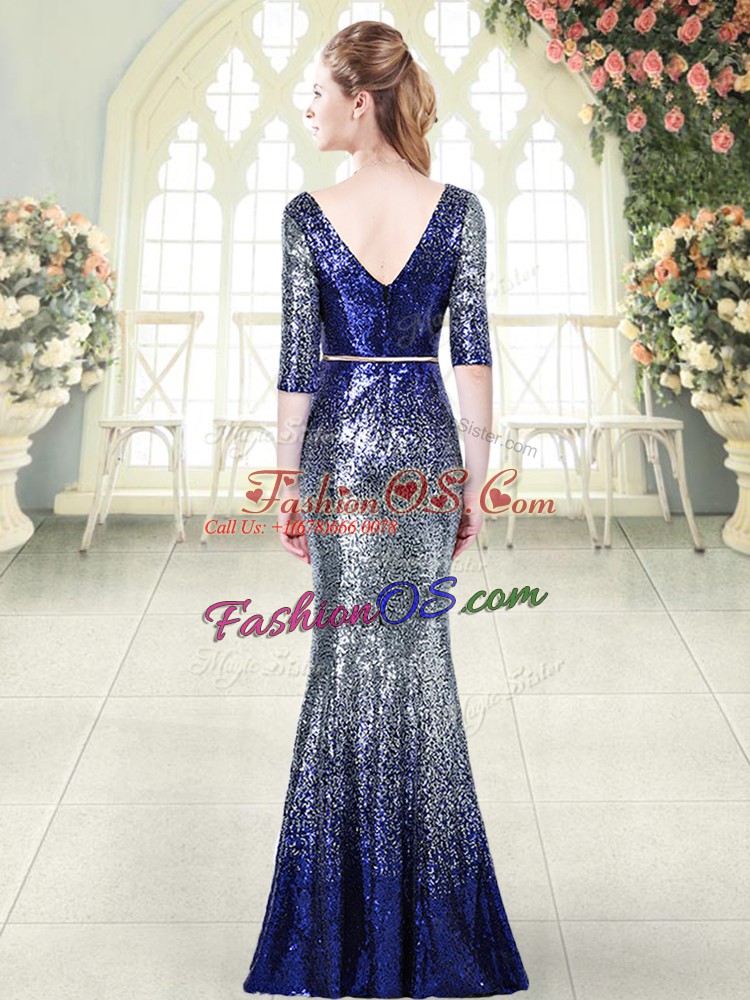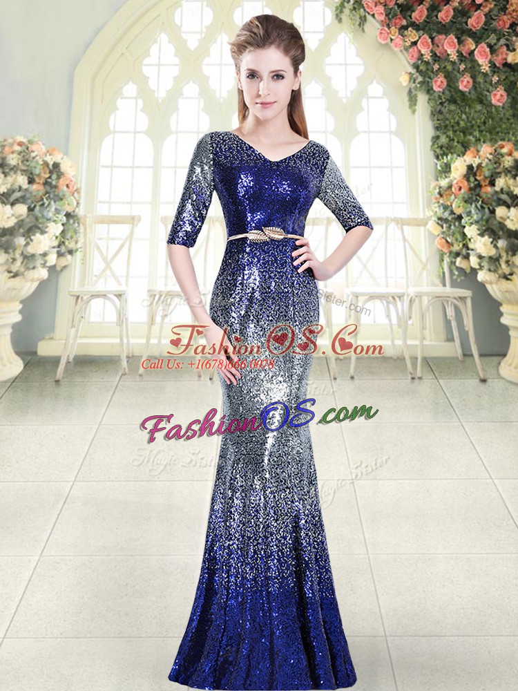 Dynamic Half Sleeves Belt Zipper Prom Gown