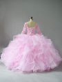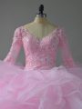Dynamic Pink Lace Up 15 Quinceanera Dress Lace and Ruffles Long Sleeves Floor Length