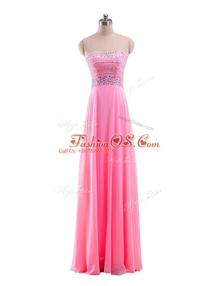 Dynamic Rose Pink Strapless Neckline Beading Homecoming Gowns Sleeveless Zipper