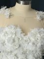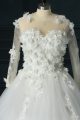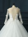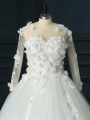 Dynamic Scoop 3 4 Length Sleeve Wedding Gown Court Train Lace and Appliques White Tulle
