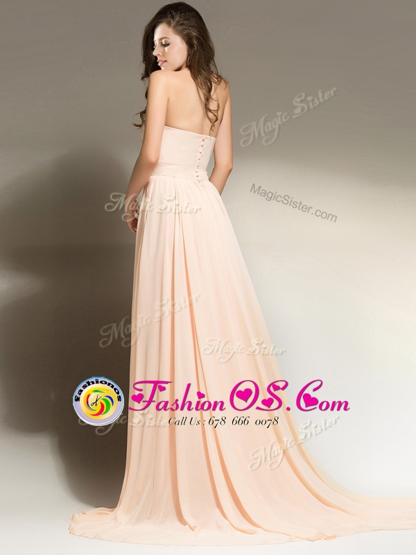 Home >  Prom Dresses >  Perfect Prom Dresses > Dynamic Sleeveless Brush Train Belt Clasp Handle Prom Evening Gown