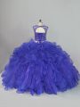 Dynamic Sleeveless Floor Length Beading and Ruffles Lace Up Quinceanera Dress with Blue