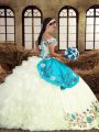 Dynamic Sleeveless Floor Length Embroidery and Ruffled Layers Lace Up Quinceanera Dress with Multi-color