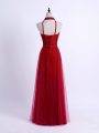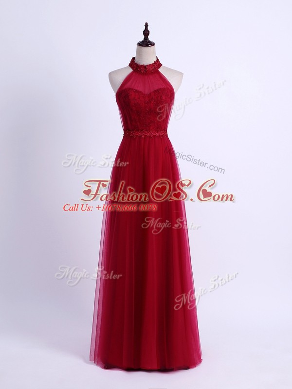 Dynamic Wine Red Tulle Lace Up Halter Top Sleeveless Floor Length Quinceanera Court of Honor Dress Lace and Appliques