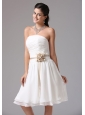 Make an entrance in this elegant and romantic white short gown. The strapless bodice hemed by the riches is simple yet gorgeous. A coordinating waist sash adds interest and detail to the mid-section of the dress. The wasistband in the middle contours your curve. The simple hidden zipper up completes the look.Simple yet graceful. It is a great choice for you.