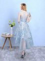 Home >  Bridesmaid Dresses >  Elegant Bridesmaid Dresses > Edgy A-line Wedding Guest Dresses Light Blue Scoop Tulle and Printed Sleeveless High Low Zipper