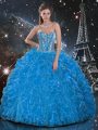 Edgy Ball Gowns Vestidos de Quinceanera Baby Blue Sweetheart Organza Sleeveless Floor Length Lace Up