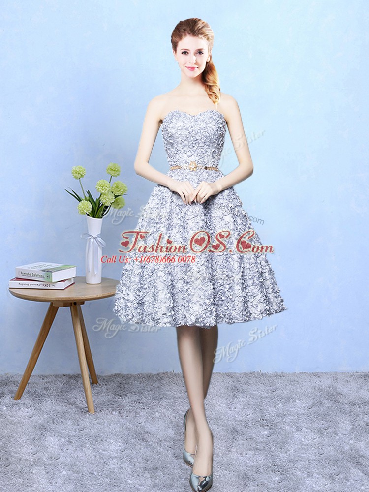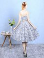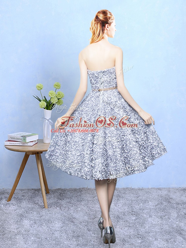 Edgy Belt Court Dresses for Sweet 16 Grey Lace Up Sleeveless Knee Length