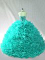 Edgy Brush Train Ball Gowns Quince Ball Gowns Aqua Blue Halter Top Organza Sleeveless Lace Up