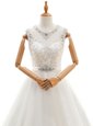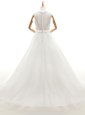 Edgy Brush Train Ball Gowns Wedding Gown White Scoop Tulle Sleeveless With Train Clasp Handle