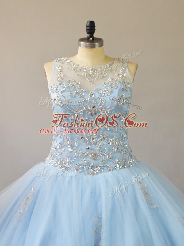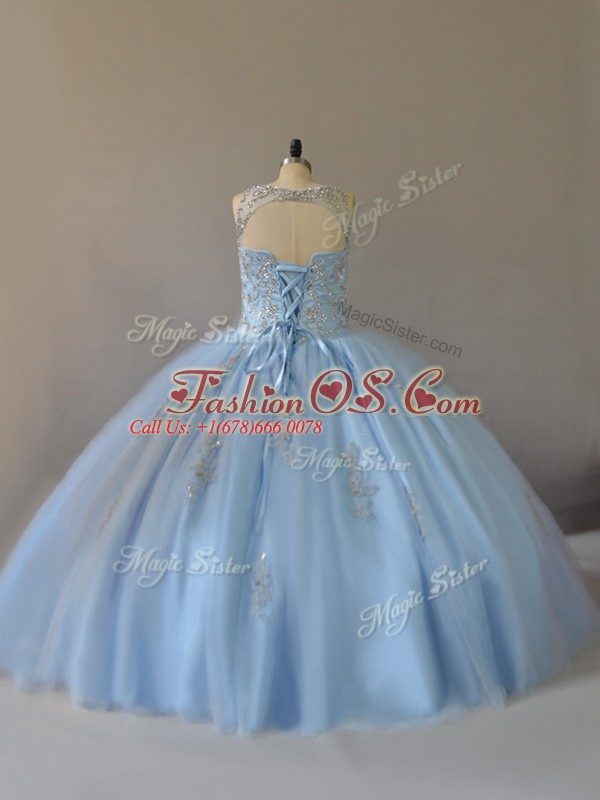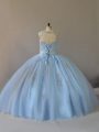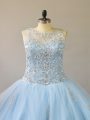 Edgy Floor Length Lace Up Vestidos de Quinceanera Light Blue for Sweet 16 and Quinceanera with Beading