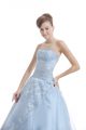 Edgy Floor Length Light Blue 15 Quinceanera Dress Sweetheart Sleeveless Lace Up