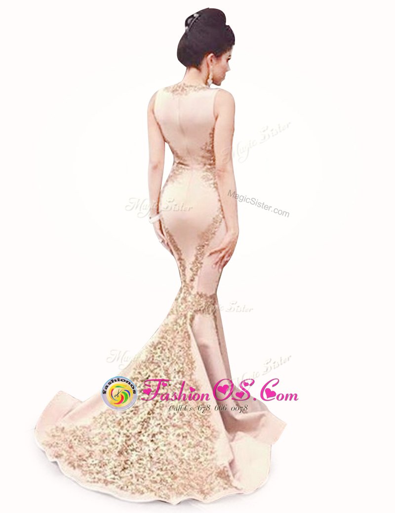 Home >  Prom Dresses >  Fashionable Prom Dresses > Edgy Mermaid Scoop Peach Sleeveless Brush Train Beading With Train Prom Party Dress