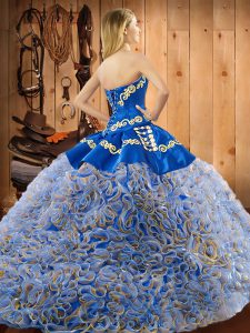 Edgy Multi-color Satin and Fabric With Rolling Flowers Lace Up Sweetheart Sleeveless With Train Quinceanera Dresses Sweep Train Embroidery