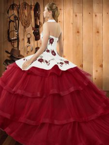 Edgy Olive Green Sleeveless Embroidery and Ruffled Layers Lace Up 15 Quinceanera Dress