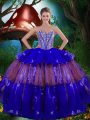 Edgy Royal Blue Ball Gowns Beading and Ruffled Layers Quinceanera Gowns Lace Up Organza Sleeveless Floor Length