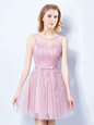 Edgy Scoop Sleeveless Tulle Quinceanera Court Dresses Appliques and Belt Lace Up