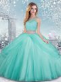 Edgy Scoop Sleeveless Tulle Sweet 16 Quinceanera Dress Beading and Lace Clasp Handle