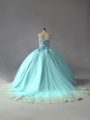 Edgy Sleeveless Court Train Appliques Lace Up 15th Birthday Dress