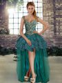 Edgy Sleeveless Floor Length Beading and Appliques Lace Up Sweet 16 Dresses with Green