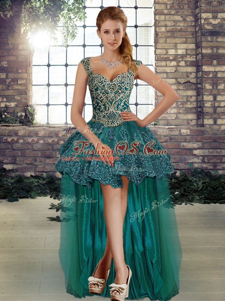 Home >  Quinceanera Dresses >  Detachable Quinceanera Skirts > Edgy Sleeveless Floor Length Beading and Appliques Lace Up Sweet 16 Dresses with Green