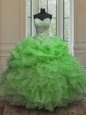 Edgy Sleeveless Lace Up Floor Length Beading and Ruffles and Pick Ups Quince Ball Gowns