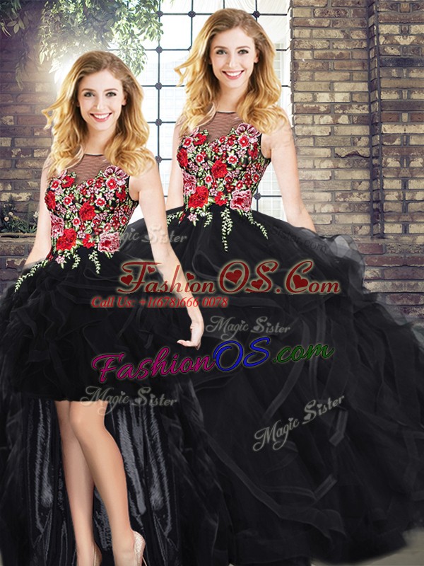 Edgy Sleeveless Zipper Floor Length Embroidery and Ruffles Ball Gown Prom Dress