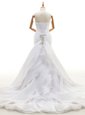 Edgy Sweetheart Sleeveless Court Train Lace Up Bridal Gown White Organza