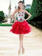 Home >  Prom Dresses >  Perfect Prom Dresses > Edgy White And Red Sleeveless Mini Length Embroidery and Ruffles Zipper Dress for Prom