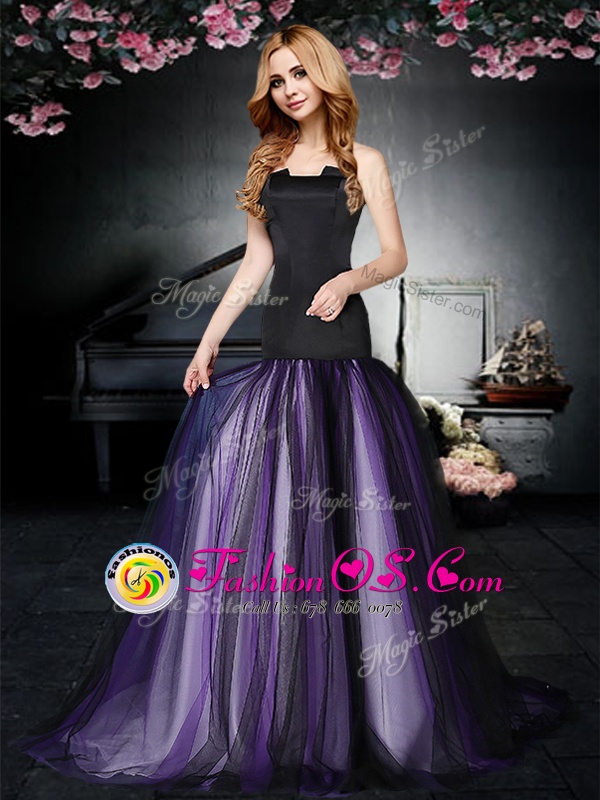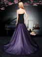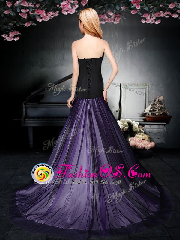 Edgy With Train Lace Up Oscars Dresses Black and Purple and In for Prom and Party with Ruching Brush Train