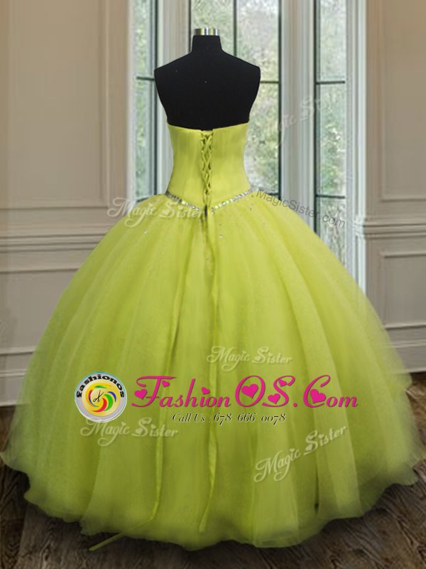 Edgy Yellow Green Lace Up Sweetheart Beading and Belt Quinceanera Gown Organza Sleeveless