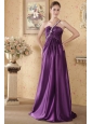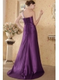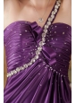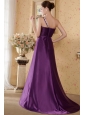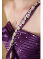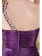 Home >  Prom Dresses >  Beautiful Prom Dresses > Eggplant Empire One Shoulder Brush Train Elastic Woven Satin Beading and Ruch Prom / Graduation Dress