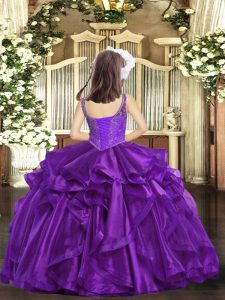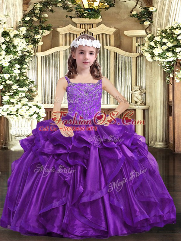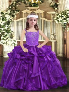 Eggplant Purple and Purple Sleeveless Floor Length Beading Lace Up Pageant Dress for Girls