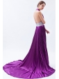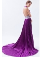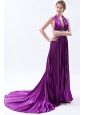 Home >  Prom Dresses >  Discount Prom Dresses > Eggplant Purple Backless Sequin Pleat Prom Dress A-line / Princess Halter Court Train