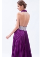 Eggplant Purple Backless Sequin Pleat Prom Dress A-line / Princess Halter Court Train