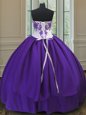 Eggplant Purple Ball Gowns Taffeta Sweetheart Sleeveless Beading Floor Length Lace Up Quince Ball Gowns