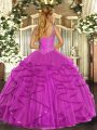 Eggplant Purple Ball Gowns Tulle V-neck Sleeveless Beading and Ruffles Floor Length Lace Up Quinceanera Gown