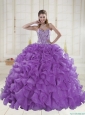 Eggplant Purple Brush Train Quinceanera Dresses with Sweetheart
