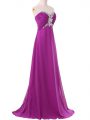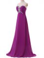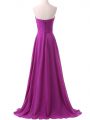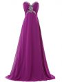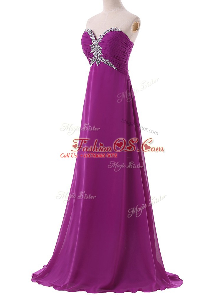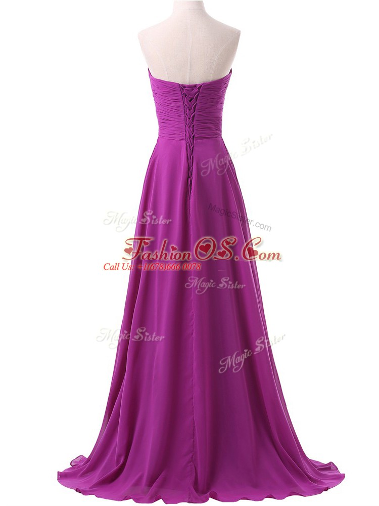 Eggplant Purple Chiffon Lace Up Sweetheart Sleeveless Prom Party Dress Brush Train Beading and Ruching