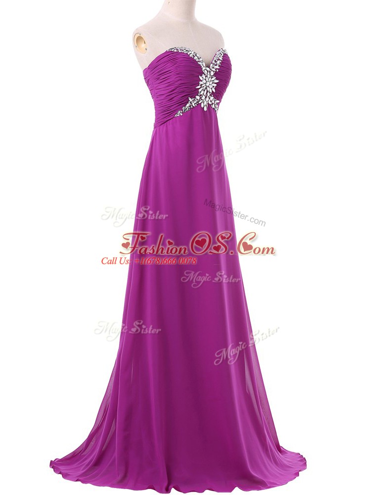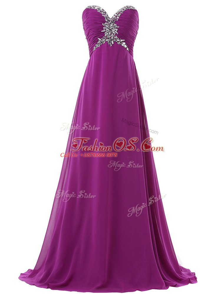 Home >  Prom Dresses >  Prom Dresses On Sale > Eggplant Purple Chiffon Lace Up Sweetheart Sleeveless Prom Party Dress Brush Train Beading and Ruching