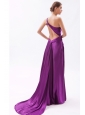 Eggplant Purple Column Asymmetrical Brush Train Chiffon Ruch and Beading Evening Dress
