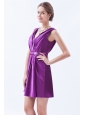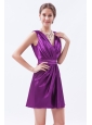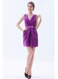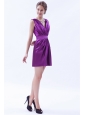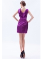 Home >  Prom Dresses >  Discount Prom Dresses > Eggplant Purple Column / Sheath V-neck Prom / Evening Dress Taffeta Beading Mini-length