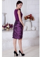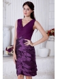 Eggplant Purple Column V-neck Ruch Mother Of The Bride Dress Knee-length Taffeta