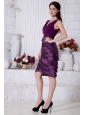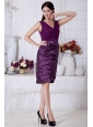 Home >  Special Occasion Dresses >  Mother of the Bride Dresses > Eggplant Purple Column V-neck Ruch Mother Of The Bride Dress Knee-length Taffeta