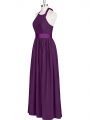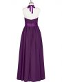 Eggplant Purple Empire Ruching Homecoming Dress Zipper Chiffon Sleeveless Floor Length