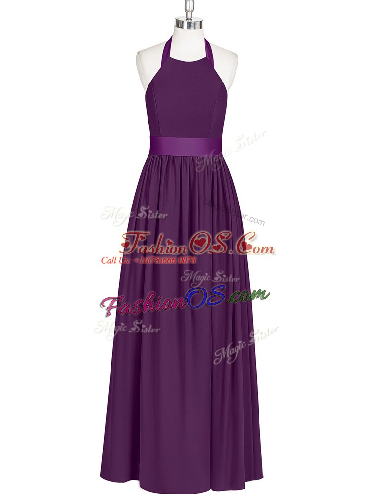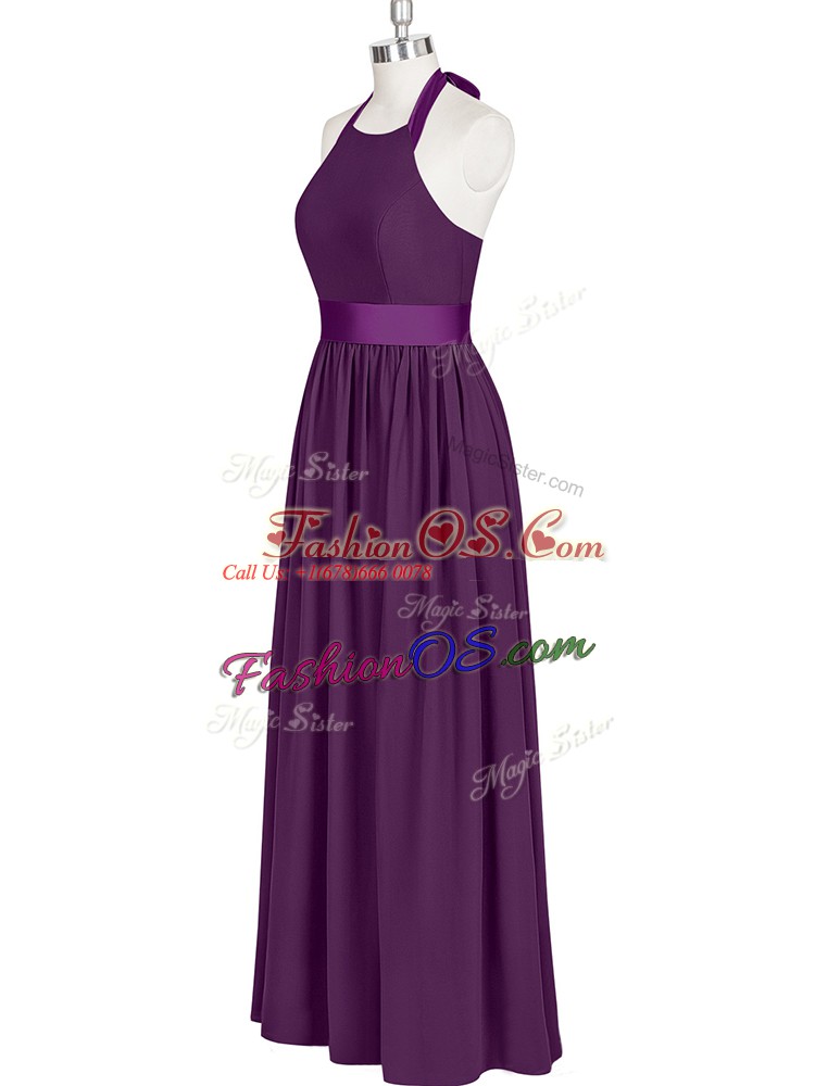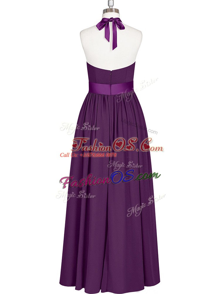 Home >  Prom Dresses >  Perfect Prom Dresses > Eggplant Purple Empire Ruching Homecoming Dress Zipper Chiffon Sleeveless Floor Length