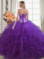 Eggplant Purple Lace Up Sweetheart Beading and Ruffles Quinceanera Gown Tulle Sleeveless