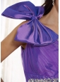 Eggplant Purple One Shoulder Beading and Bow 2013 Prom Cocktail Dress With Tulle