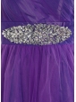 If you have a flair for the dramatic and are not afraid to be noticed, this organza one shoulder bow ruched purple cocktail dress may help you to be the shining star on your party. The bow on the shoulder strap stands out, while the band with sparkling rhingstones accents make you shining and stunning. The short tulle skirt flatters your legs definitely. This dress is sure to land on everyone's best dress list.