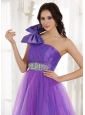 Home >  Special Occasion Dresses >  Homecoming Dresses > Eggplant Purple One Shoulder Beading and Bow 2013 Prom Cocktail Dress With Tulle